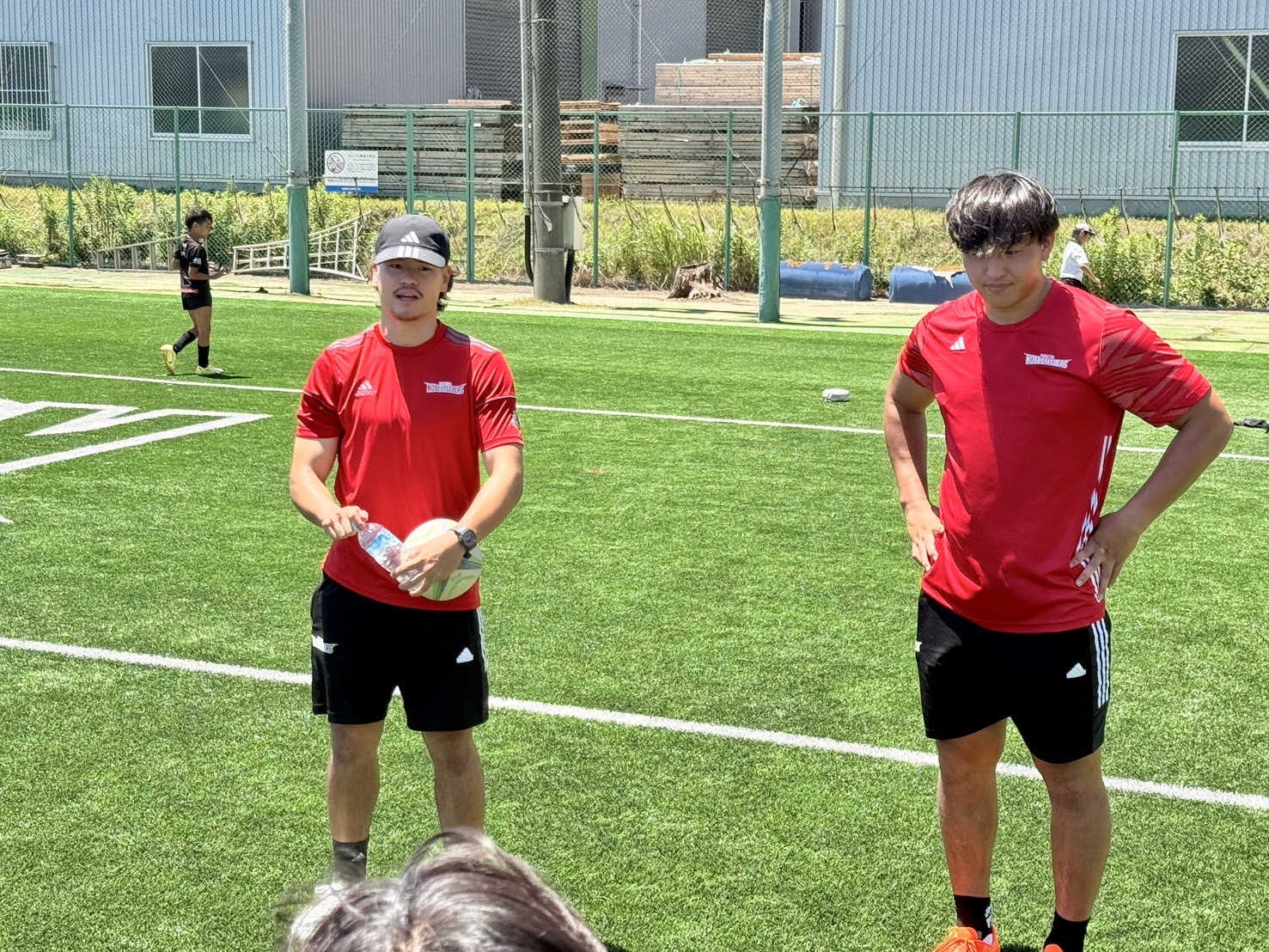 2025年8月3日 / 最終更新日時 : 2025年8月4日 JOJO Diary コベルコ神戸スティーラーズの伊藤大祐選手、本橋拓馬選手が練習に参加してくれました 7/20(日)にコベルコ・スポーツパークで行われた練習に、コベルコ神戸スティーラーズの伊藤大祐選手、本橋拓馬選手が参加して、中学生を指導してくれました。 ありがとうございます。 SHARE THIS ARTICLE: クリックして X で共有 (新しいウィンドウで開きます) X Facebook で共有するにはクリックしてください (新しいウィンドウで開きます) Facebook クリックして印刷 (新しいウィンドウで開きます) 印刷 クリックして友達にメールでリンクを送信 (新しいウィンドウで開きます) メールアドレス 関連